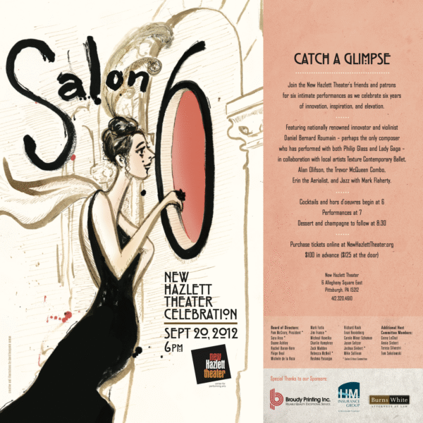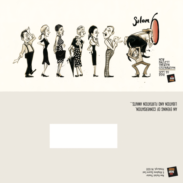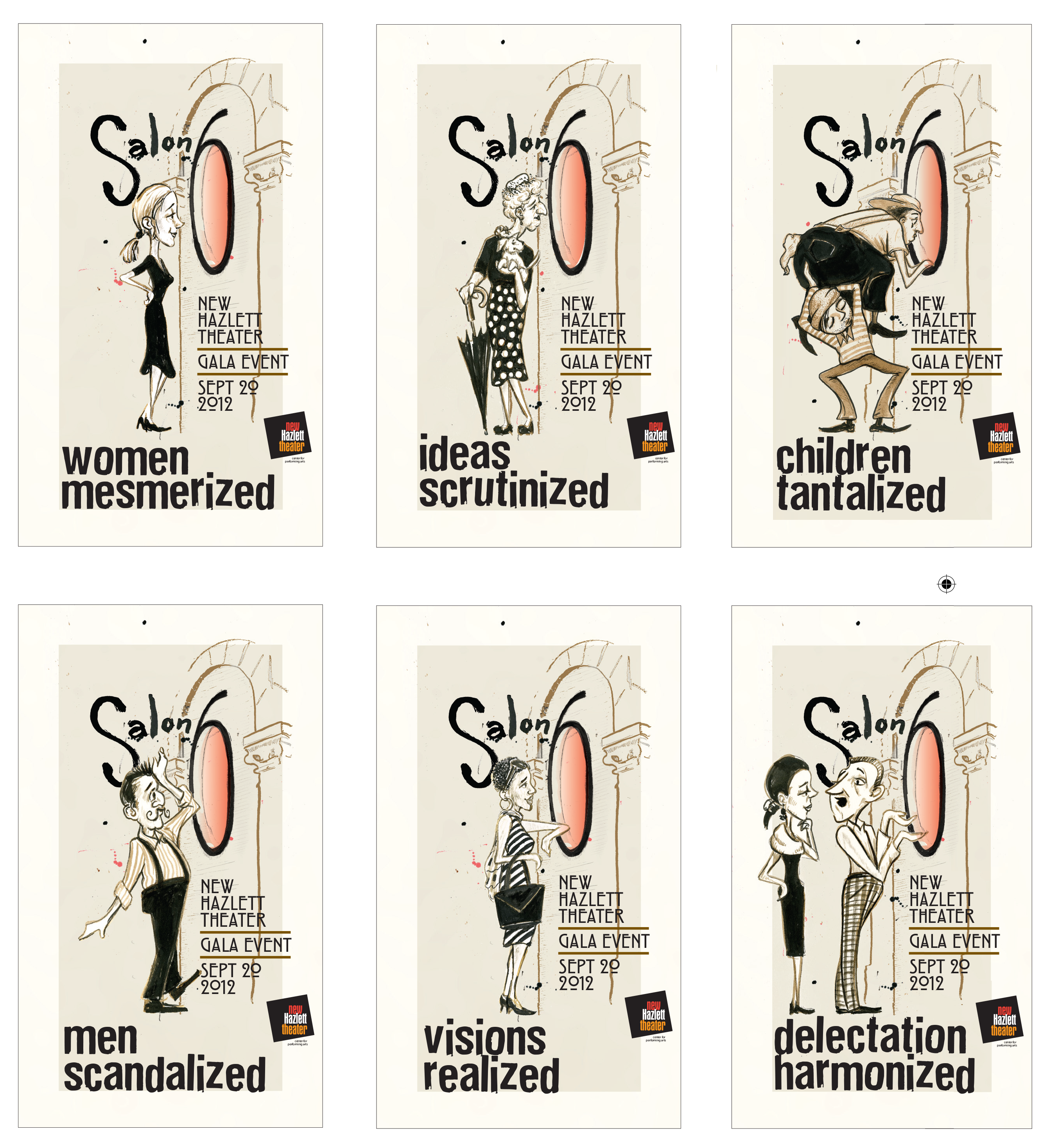 Invitation and materials with illustrations done in various inks. Salon 6 was a great event to support the New Hazlett introducing attendees to 6 unique performances never before seen. I gave the original illustrations to one of the event organizers and they are still hanging on the walls of his home.