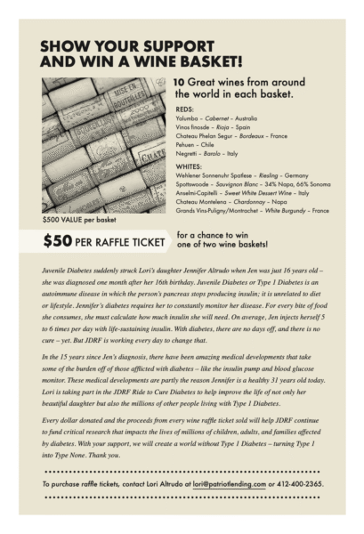 Announcement for a benefit in support of Juvenile Diabetes Research Foundation.